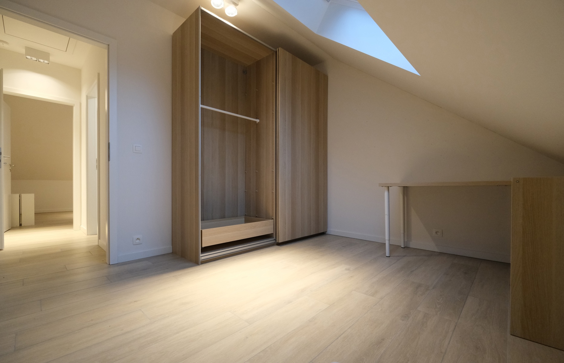Atouts supplémentaires : rails de rideaux, luminaires déjà installés, chaudière individuelle au gaz, ventilation double flux, PEB A, parlophone.